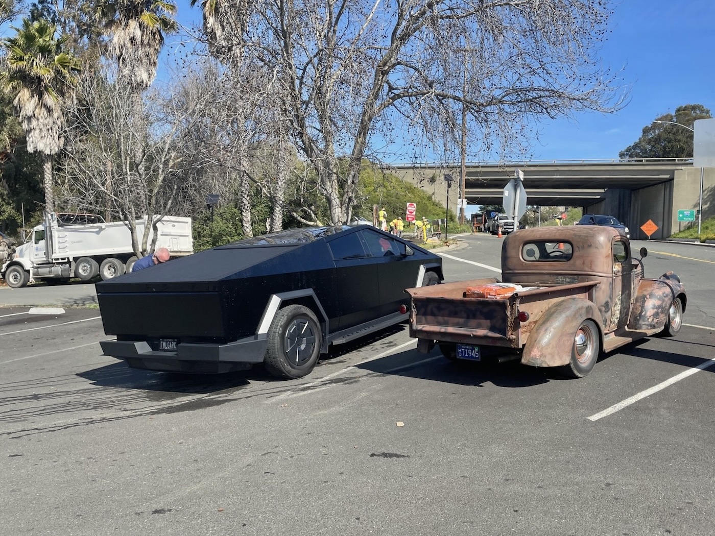 about [dump truck, dumpster***…] in the ’45, at lunch