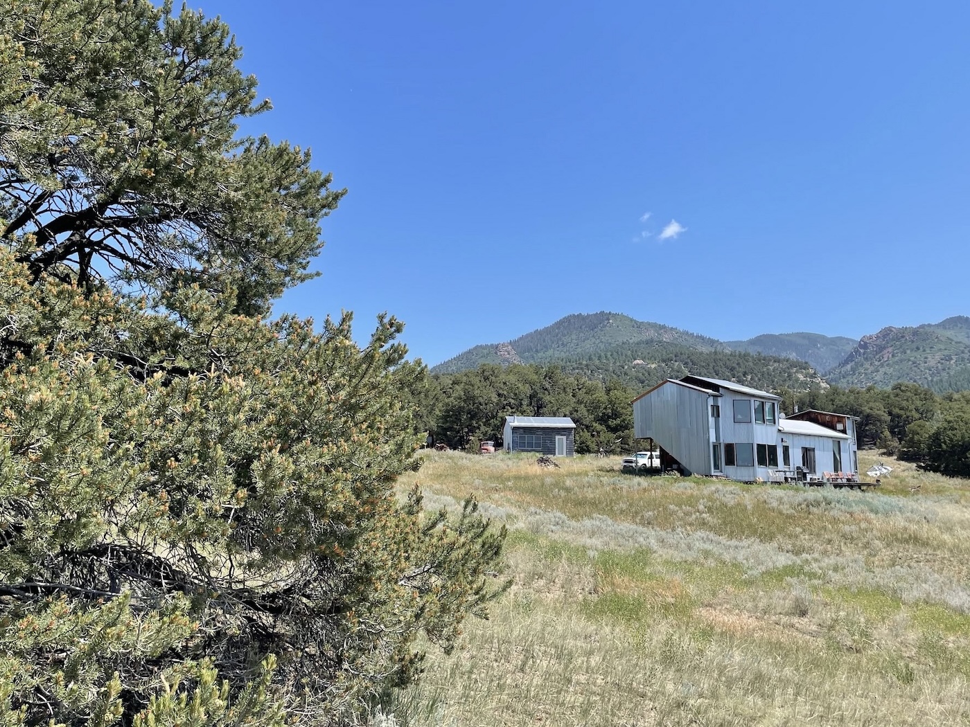 Well Thursday began with an early start for town, unfortunately intersecting a deer before we’d even reached the pavement but fortunately the overcast held through most of the morning, confining the temperature to the mid-nineties as we hit Gag’s, Liz’s Tamales, a somewhat moribund Safeway, the always excellent Ashley Hardware, 80/20 Wines and Colorado Tire who fixed the persistently leaking right rear and rotated the tires in less time than it takes to get checked in at Benicia’s [or any] Big O. By then it was 11:30 and with the sun out the remaining stops [Goodwill, Natural Grocers] were warming up, the parking lot at the grocers being fairly
