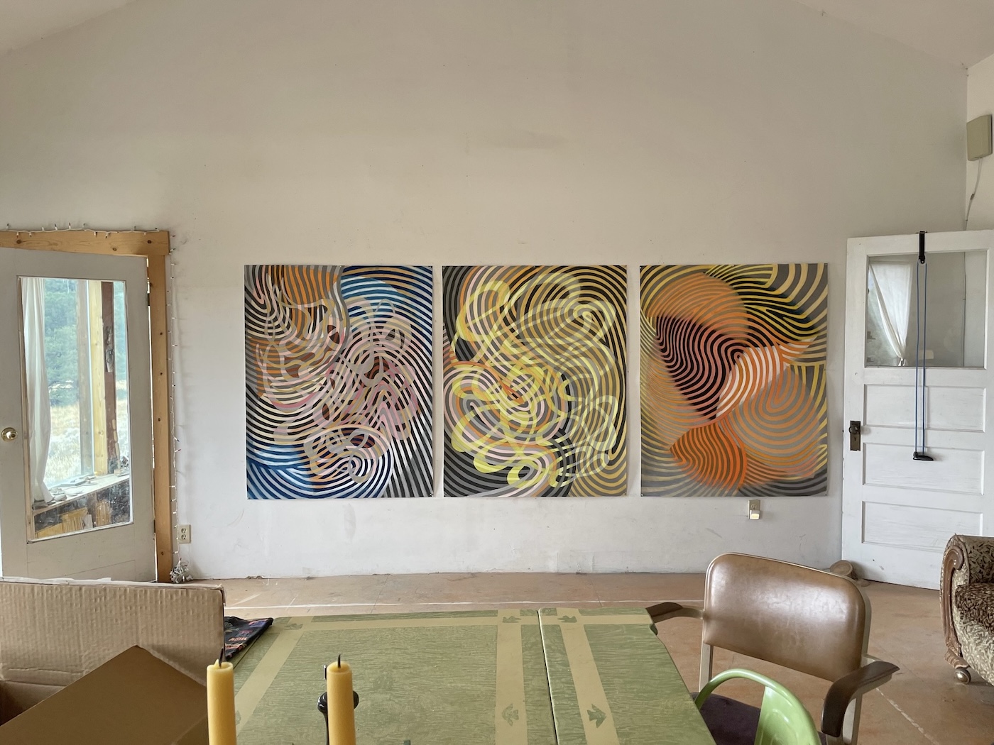 an afternoon spent culling, finishing and wrapping paintings – not shown – to Go West as L.