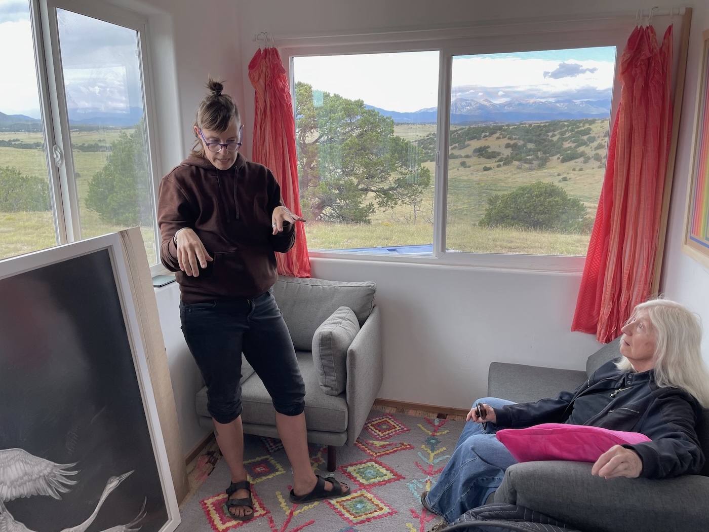 to allow the first refrigerator she’s had in years…beautifully sited, mountains all around, off grid