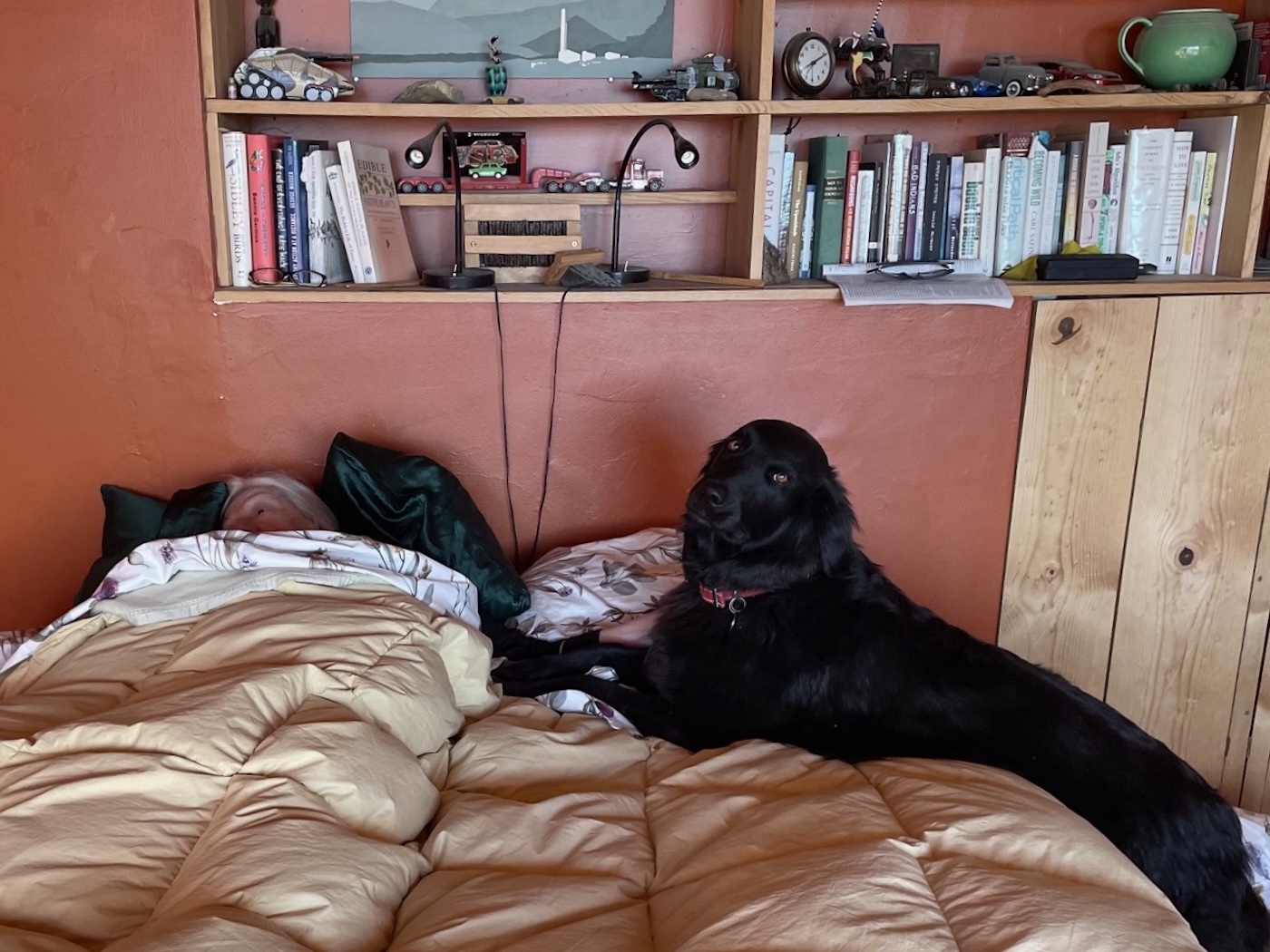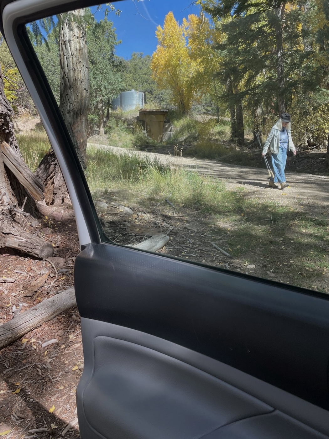 *We strategized about work on the library of course but also Friday will see the arrival of Luz, Christine and Izel as well as possibly qoqbob, old friend of Libre who has been bicycling in our direction from Maryland since the beginning of September followed Saturday by Dirk Van Dall and a crew out of New York coming to interview Luz, Linda and Dean for a film about Mark Di Suvero. We’ll see what comes of all that but in any event there’ll be some heavy provisioning to do in Pueblo Tuesday as well as a whole lot of house [and cabin] cleaning before week’s end.
