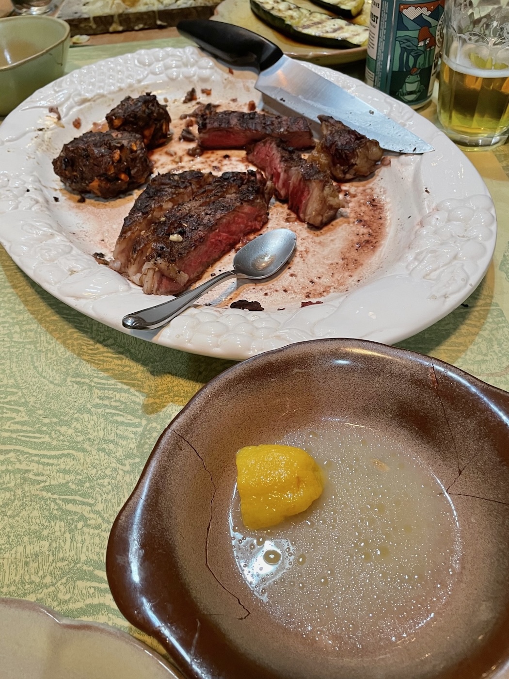 abundant Meat Feast – steak and elk meatballs* – perpetrated by John and Luz, topped off with