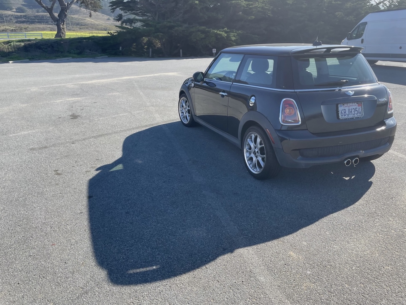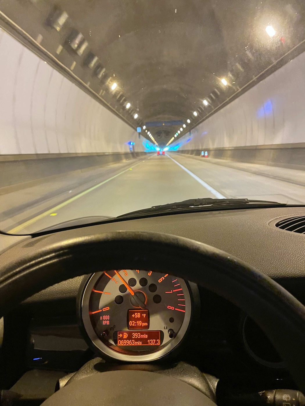 while I, the Taco having failed to start, headed for the coast in Linny’s Mini with minimal