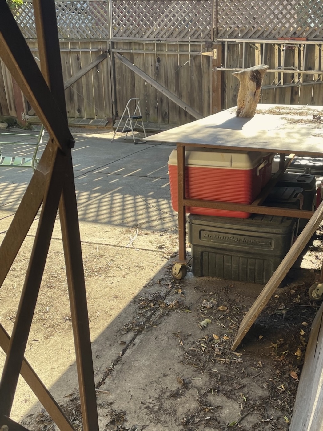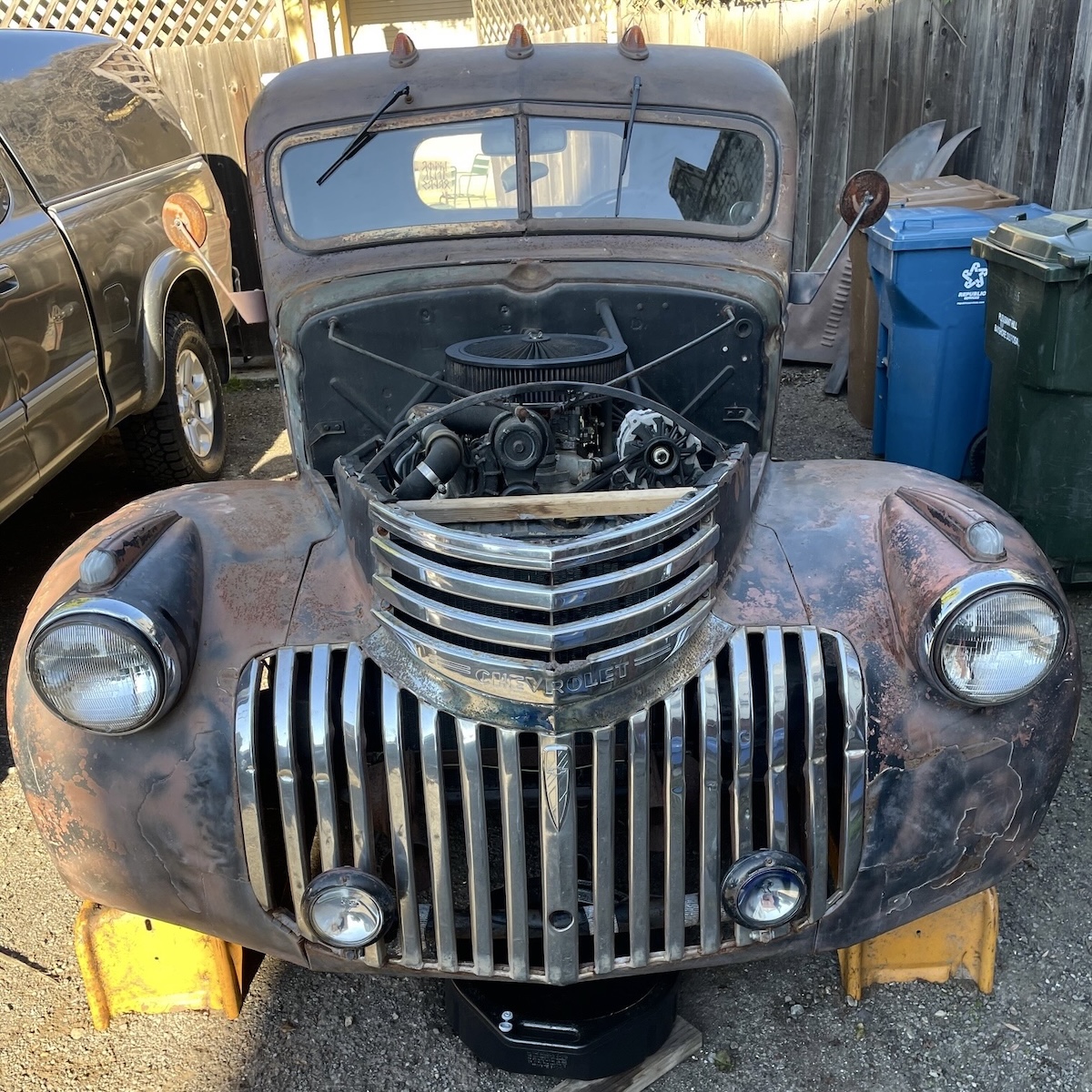L had an interview with Benicia Magazine about her upcoming library show there was time to catch up, lunch in the yard and at least get the hood off the little truck before arthritis insisted
