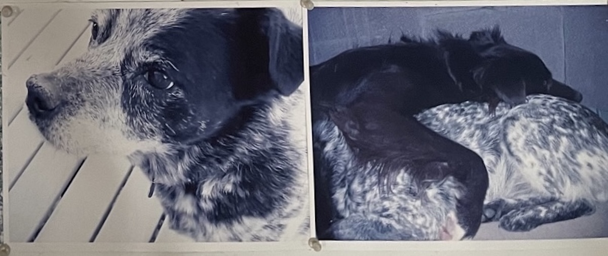 beneath memories of Earlier Dogs…left, Lefty…Speckle on Lefty…